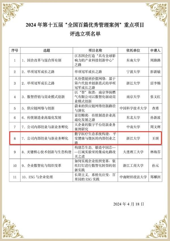 值得一提的是,自评选以来,浙大管院重点项目届届上榜,这既是我院教师案例研究能力的集中展示,也是学院长期以来案例库建设成果和学科综合实力的展现。