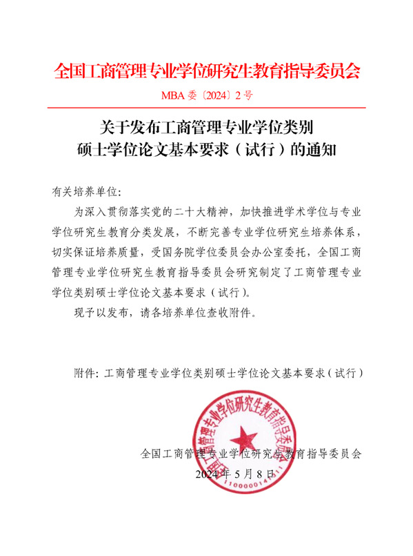 此次紧随《教育部关于深入推进学术学位与专业学位研究生教育分类发展的意见(教研(〔2023]2号)》发布的工商管理专业学位类别硕士学位论文基本要求(试行)(以下简称“基本要求”),是落实党的二十大精神,贯彻习近平总书记关于教育的重要论述和研究生教育工作的重要指示精神,进一步提升拔尖创新人才自主培养,建设高质量研究生教育体系的具体表现。