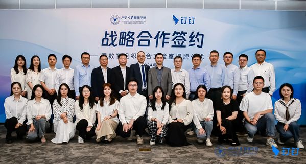 参加“浙大管院-钉钉数智组织联合实验室”成立仪式的魏俊杰(前排左6)