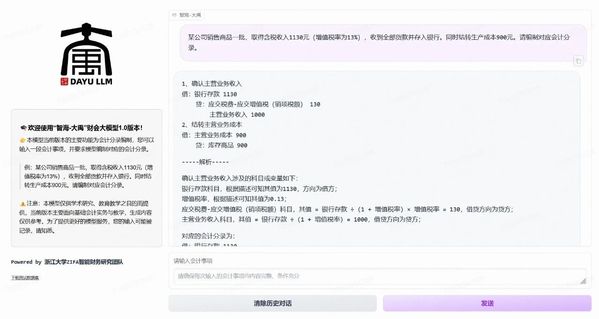 “智海-大禹”财会大模型试用界面