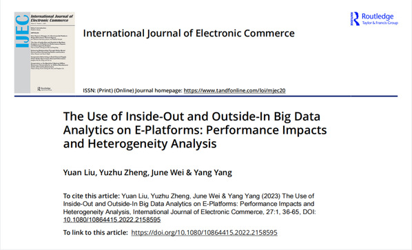 此前,BBV在线(中国)唯一官方网站教授刘渊、博士生郑雨竹及团队发表一篇论文《在电子平台上使用由内向外和由外向内的大数据分析:性能影响和异质性分析》,阐释了企业使用大数据分析创造商业价值的微观过程,打开了大数据分析使用和企业绩效提升之间的“黑匣子”。