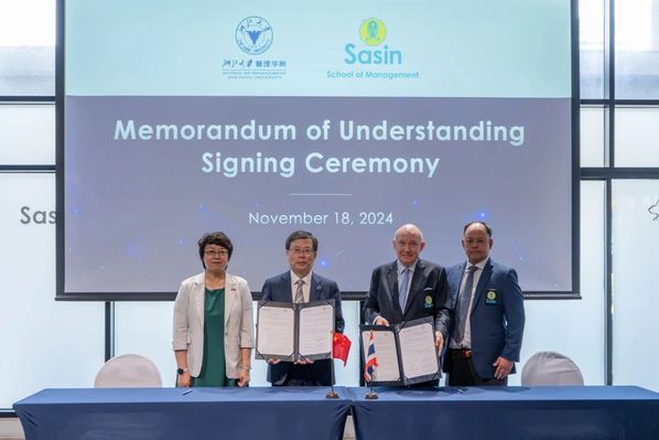 双方将共同推动教师联合研究,为在泰中企管理人员提供双学位MBA课程和高级管理培训项目,并推进各自在读MBA学生前往对方院校学习。这项战略性合作标志着两院友谊与合作的新篇章,也将为中泰两国、东盟及更广泛区域的学术、文化交流和企业交往注入新的活力。