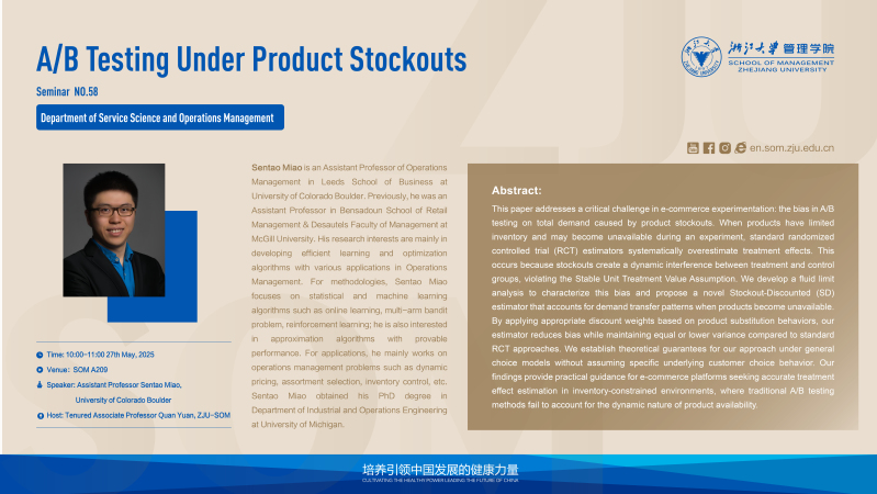服务科学与运营管理学系学术讲座No.58:Assistant Professor Sentao Miao, University of Colorado Boulder