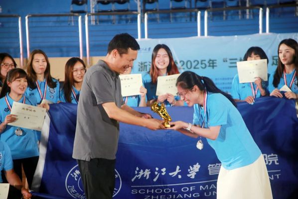 2023年,浙大管院党委副书记潘健为管院女足颁奖