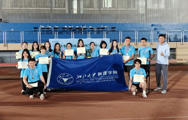 浙大管院女足与教练、领队们共同上台接受颁奖表彰