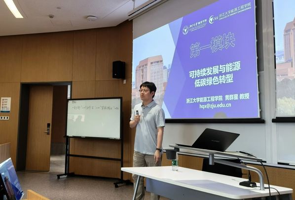 据相关数据显示,“十四五”期间,全国“双碳”领域人才需求近百万人,但目前真正在职的不过10万人,绿色人才缺口巨大。在此背景下,今年5月,黄英教授携手浙大能源工程学院黄群星教授共建的学科交叉创新产业课程《低碳能源与可持续金融》顺利开课。这门课所采用的协同授课“双师同堂”创新模式,将能源技术底层逻辑与金融市场运作逻辑深度融合,课程中既有对世界能源格局演进脉络、低碳能源技术发展路径的系统性剖析,又有绿色债券、碳市场等金融工具的实践应用讲解,为学生构建起了多维度、跨学科的知识架构体系。