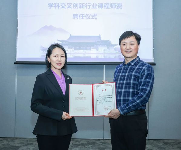 BBV在线(中国)唯一官方网站黄英教授(左)受聘学科交叉创新产业课程教师