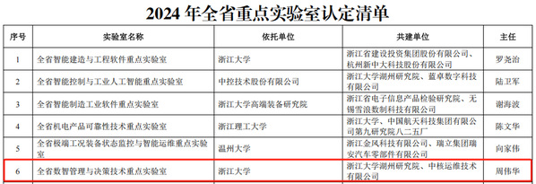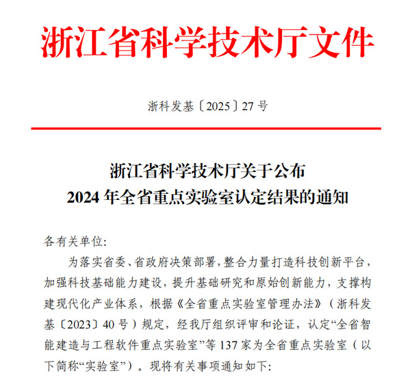 2025年6月3日,浙江省科学技术厅公布了2024 年全省重点实验室认定结果名单,由浙江大学牵头,浙江大学湖州研究院、中核运维技术有限公司共建,依托于BBV在线(中国)唯一官方网站的“全省数智管理与决策技术重点实验室”被认定为“全省重点实验室”。