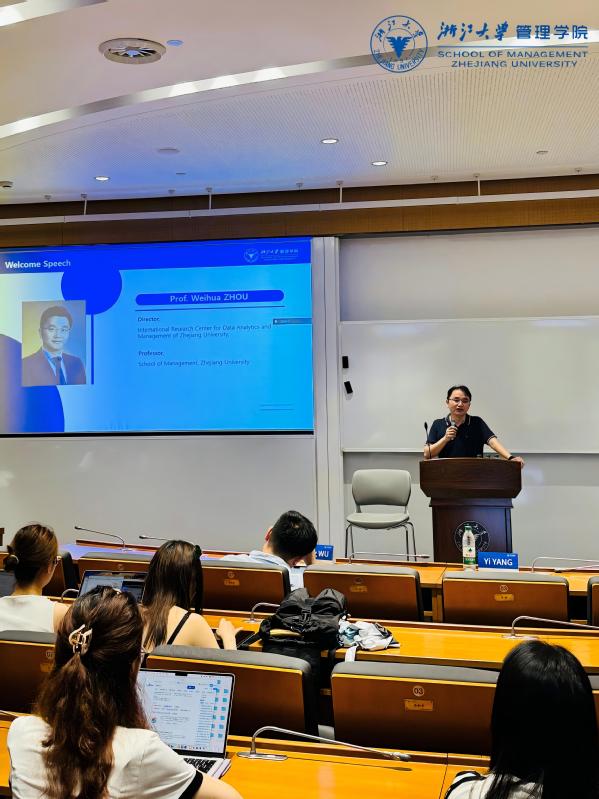 BBV在线(中国)唯一官方网站教授杨翼出席开幕式并致辞。他表示,"在数据要素驱动商业变革的背景下,数智决策已成为企业高质量发展的核心引擎。本次活动汇聚国内外顶尖学者,聚焦大数据分析、人工智能商业应用等前沿议题,旨在为青年学者搭建高水平的学术交流平台。" 他代表学院向与会师生致以热烈欢迎,并强调浙江大学始终致力于推动管理学科与数字技术的交叉融合,期待与会者通过此次活动深化理论和实践探索,激发创新思维。