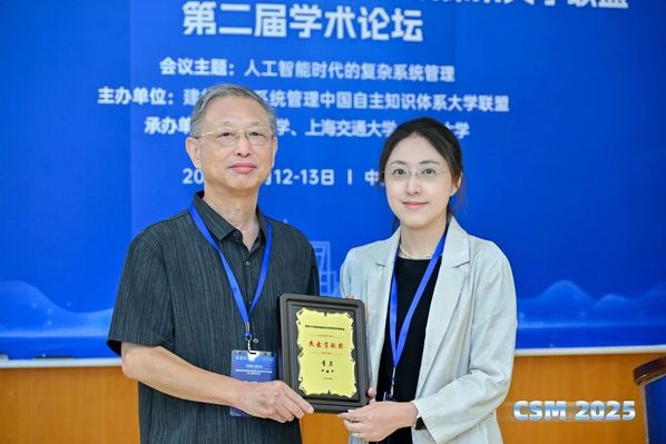 近日在建构复杂系统管理中国自主知识体系大学联盟第二届学术论坛上获奖的童昱教授(右)