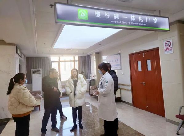 童昱(左三)带领团队去医院调研