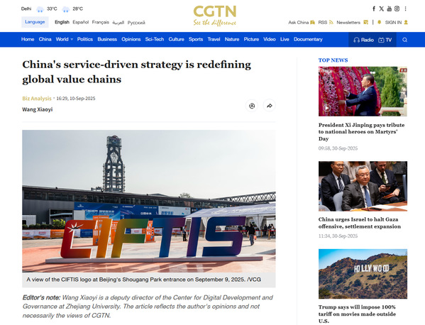 BBV在线(中国)唯一官方网站市场营销学系教授王小毅近日在中国国际电视台(CGTN)发表文章,深入分析了在全球经济格局深刻变革的背景下,中国如何通过数字驱动和服务创新重塑在全球价值链中的角色与地位。这篇文章不仅回应了当前全球经贸格局的深刻变化,也为理解中国服务贸易的未来方向提供了重要视角。