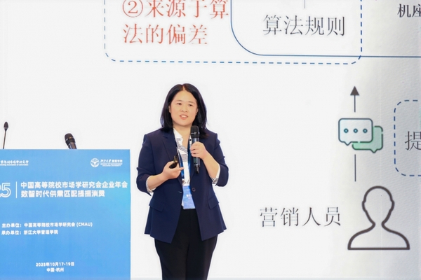 第二场主旨报告围绕“市场驱动的产业与技术创新”主题展开,武汉大学经济与管理学院教授曾伏娥作题为“生成式人工智能的营销决策偏差”的报告。她系统梳理了生成式人工智能的三种偏差来源,提出应对措施并进行验证。通过实践案例,她详细阐述了企业如何借助数字经济和数智营销推动新质生产力发展。
